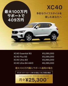 最大100万円の購入サポートで、ボルボSUVが409万円から。